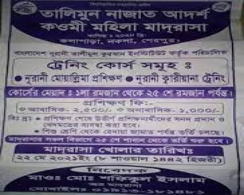 | আলেমা উম্মে হাবিবা | শিক্ষিকা, তালীমুন নাজাত মহিলা মাদরাসা, কলাপাড়া, নকলা, শেরপুর। | প্রশিক্ষিকা |