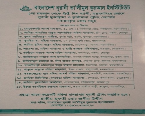 | ক্বারীয়া মর্জিনা আক্তার | পিতা- মোঃ ইদ্রিস আলী, পূর্ব গামারীতলা, কলসিন্দুর, ধোবাউড়া, ময়মনসিংহ। | প্রশিক্ষিকা |