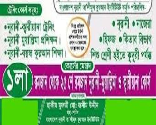 | ক্বারীয়া মাহবুবা জান্নাত মারিয়াম | পিতা- মোঃ সাইফুল ইসলাম, মশাখালী, হোসেনশাহী, পাগলা, ময়মনসিংহ। | প্রশিক্ষিকা |