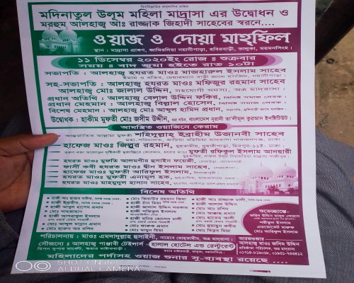 | আলেমা নাহিদা খাতুন | আলহাজ্ব হাফিজ উদ্দীন রহঃ মসজিদ মহল্লা, কৃষ্ণপুর, ধোবাউড়া, ময়মনসিংহ #০১৮২১২৩৭১৬৮ | সহকারী পরিচালক |